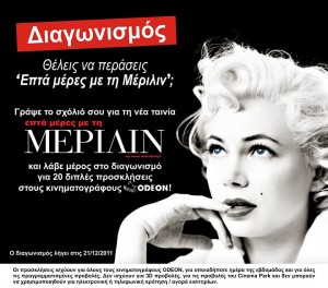 Τα δωρα του διαγωνισμου ειναι 20 διπλες προσκλησεις για την ταινια "7 μερες με την ΜΕΡΙΛΙΝ" στους κινηματογραφους ODEON